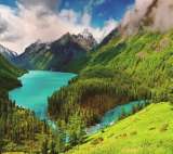 Алмазная вышивка «Лазурное озеро в горном лесу» 30x40 см